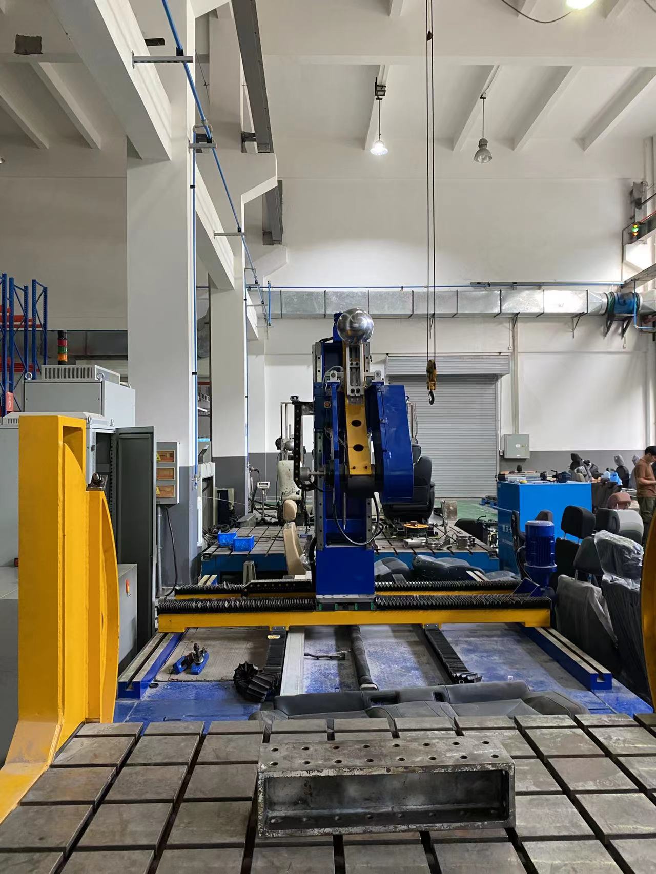 本机系用来测试座椅各部位之强度,可个别控制油压缸之作动、设定各轴之荷重及